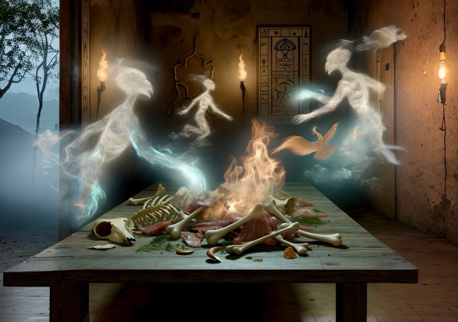 Leftover foods and meats, especially those left on bones, hold significant symbolic meaning. In many cultures, food is a symbol of sustenance and life. Leftovers can represent the remnants of life force, sustenance that is no longer needed by the living but still retains some of its life-giving properties. In esoteric thought, this residual energy can attract supernatural entities.